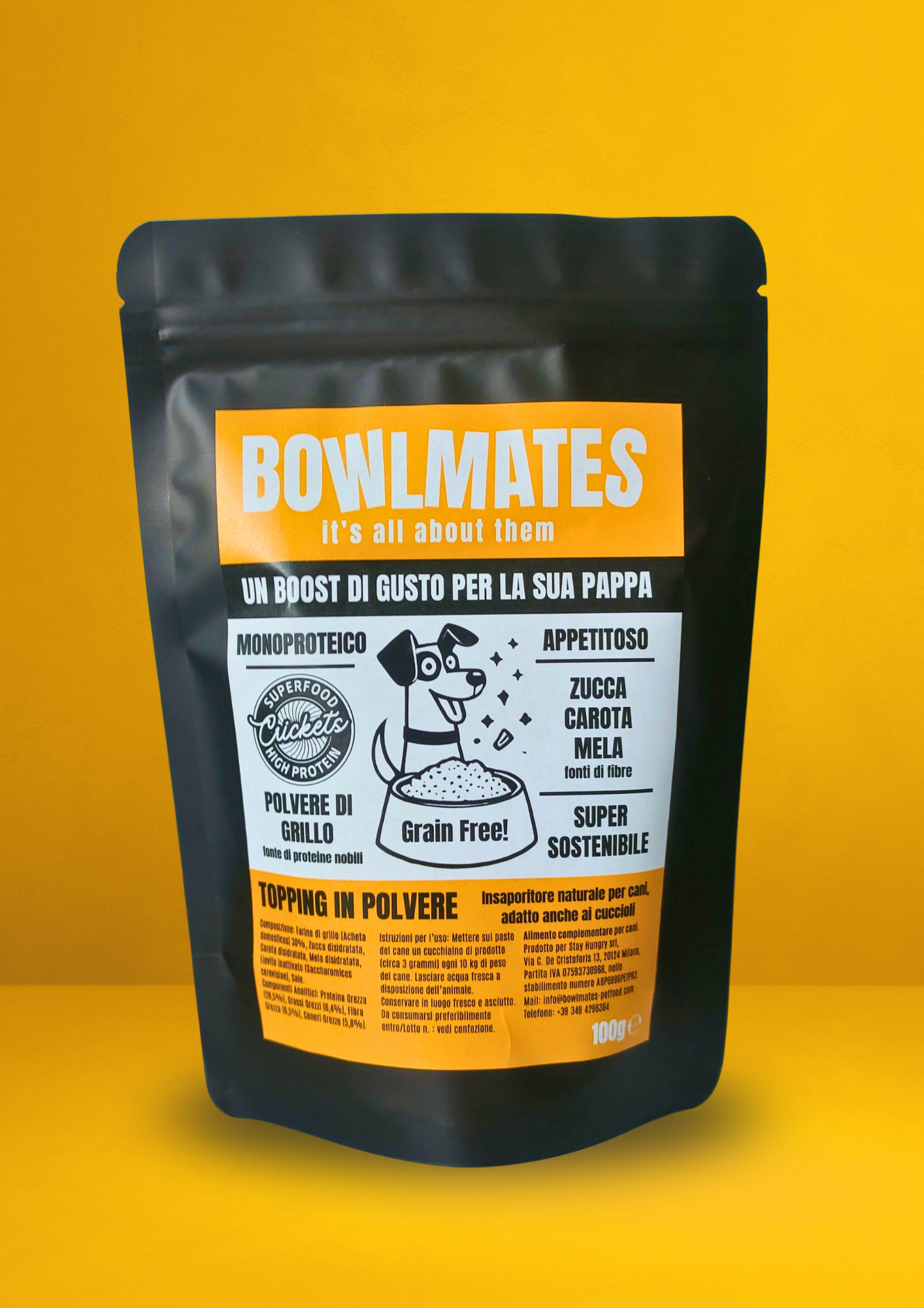 Insaporitore naturale in polvere da aggiungere alla pappa (qualsiasi pappa) del tuo cane. Contiene polvere di Grillo Superfood, Carote, Zucca e Mela. Dona alla sua pappa varietà, GUSTO, PROTEINE e tanti NUTRIENTI da ingredienti 100% naturali e sani.